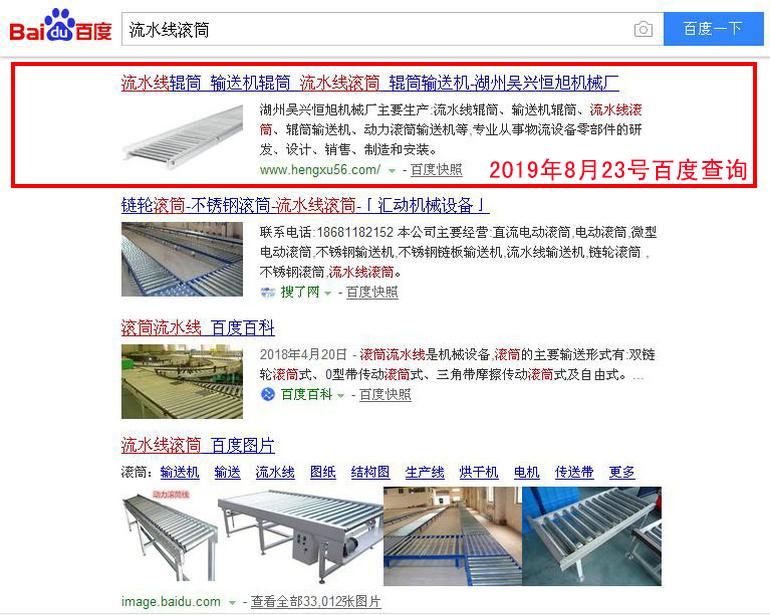 流水線輥筒 百度(PC)自然排名第1名